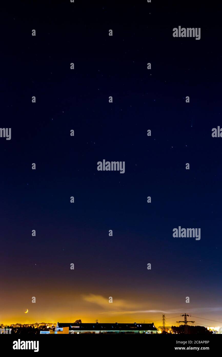 Comet NEOWISE or C/2020 F3 is seen after sunset with the company of the new Moon in Porto, Portugal. on July 22, 2020. - The comet was discovered March 27, 2020, by